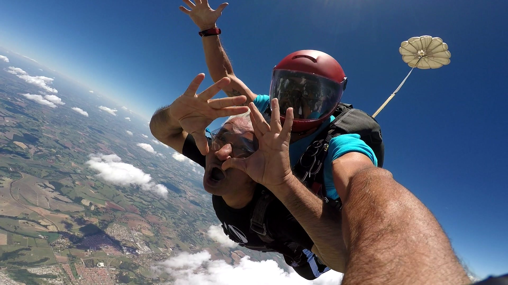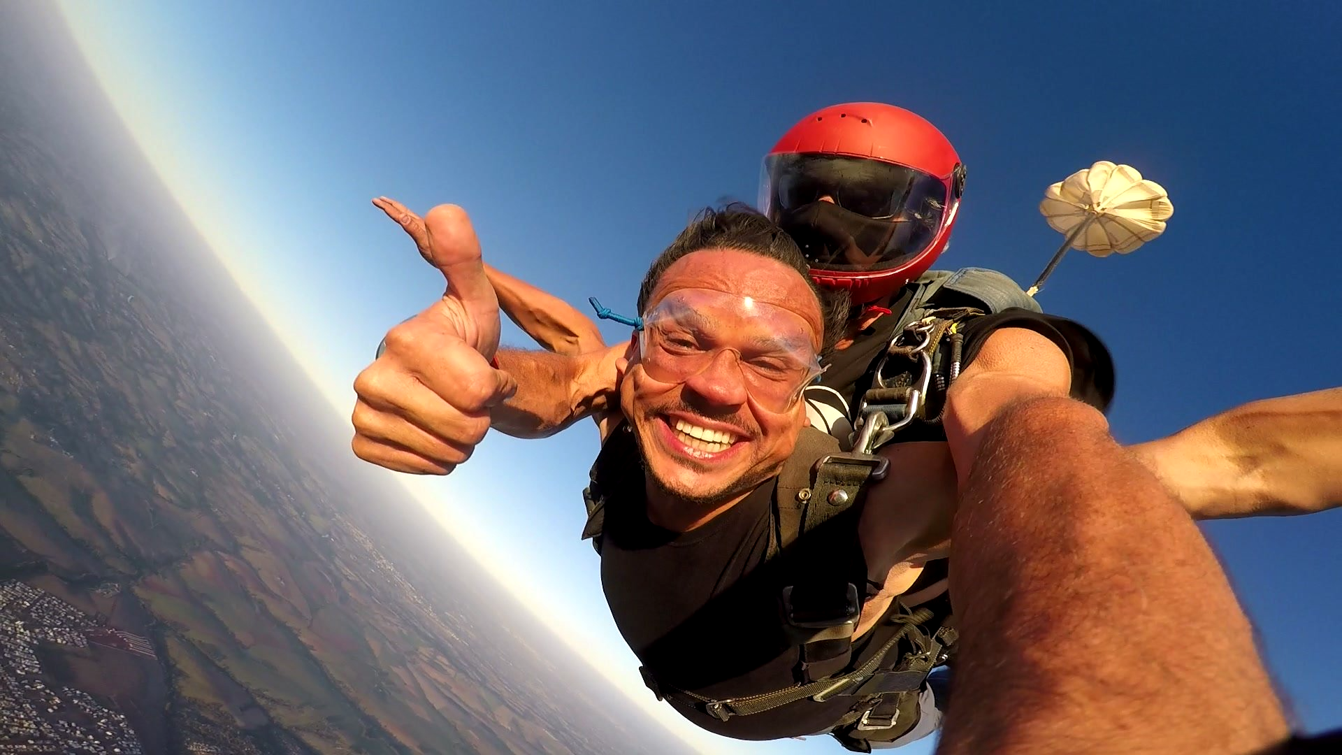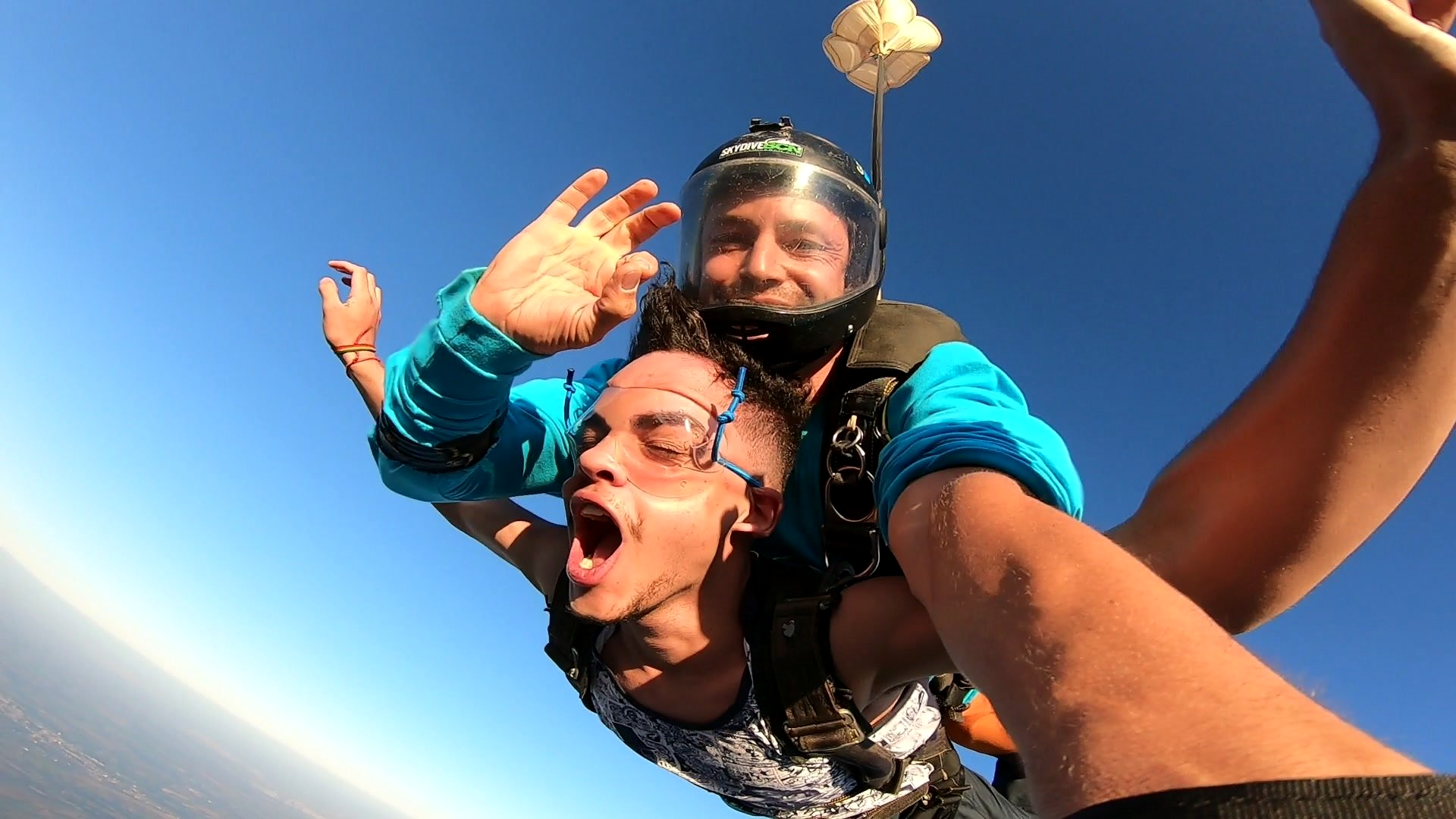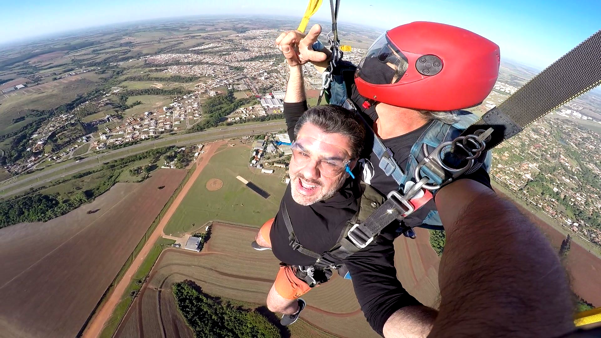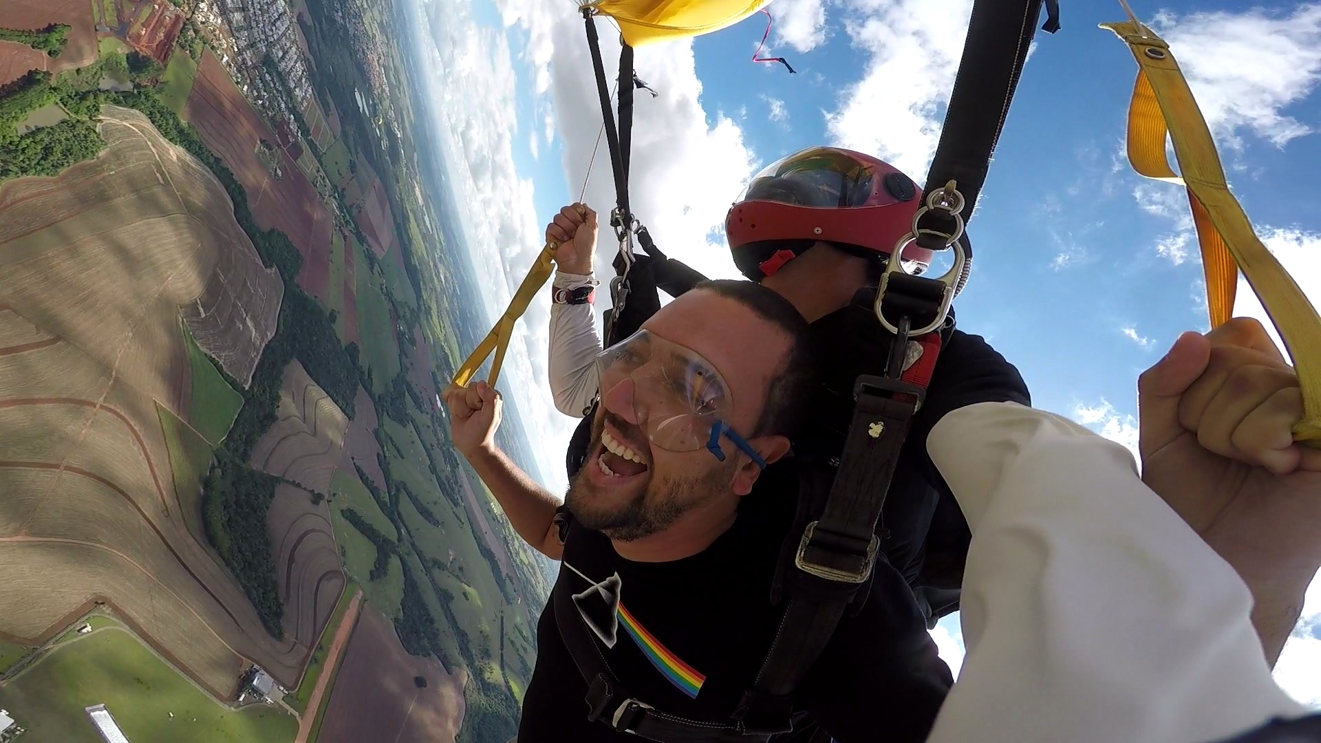 Salto Duplo VIP + Vídeo Editado + 500 Fotos por passageiro: imagens do instrutor e cinegrafista paraquedista.