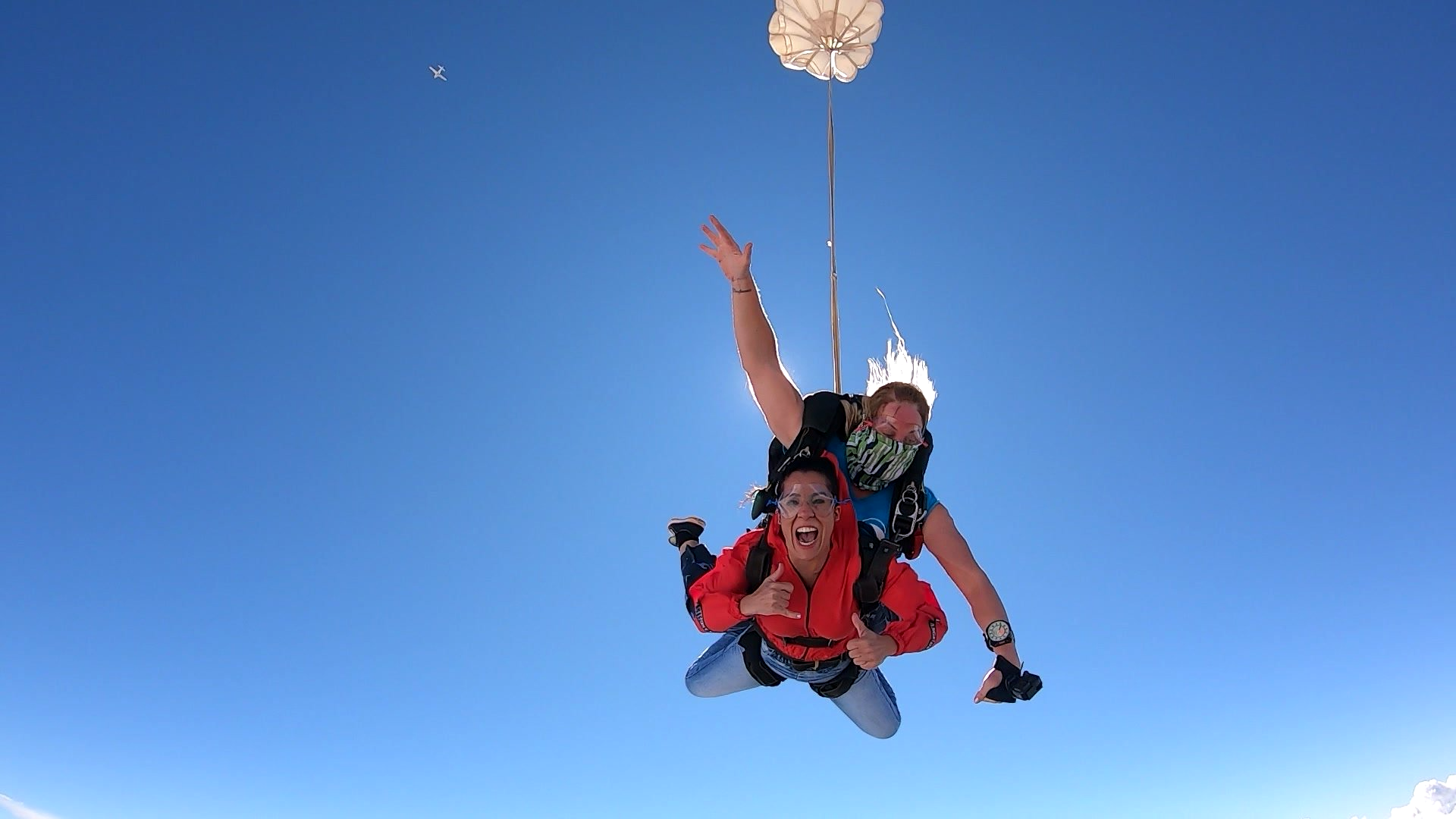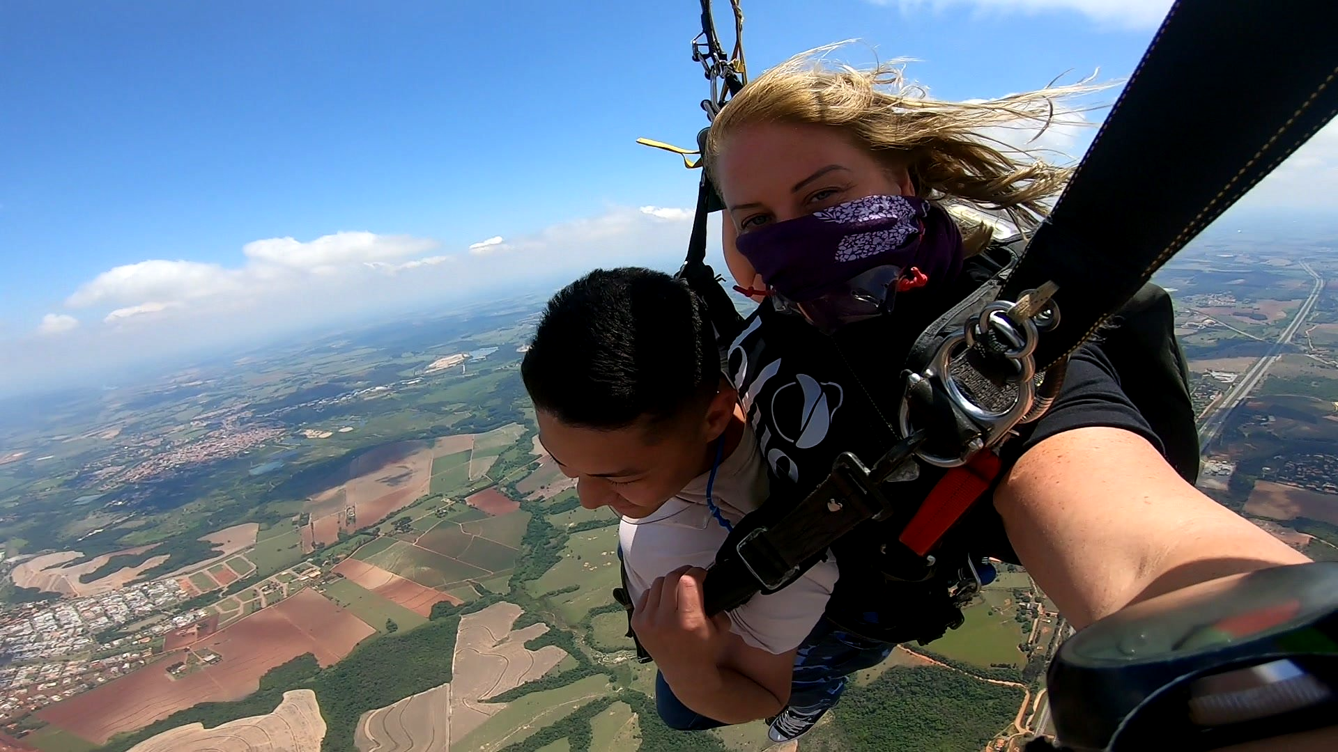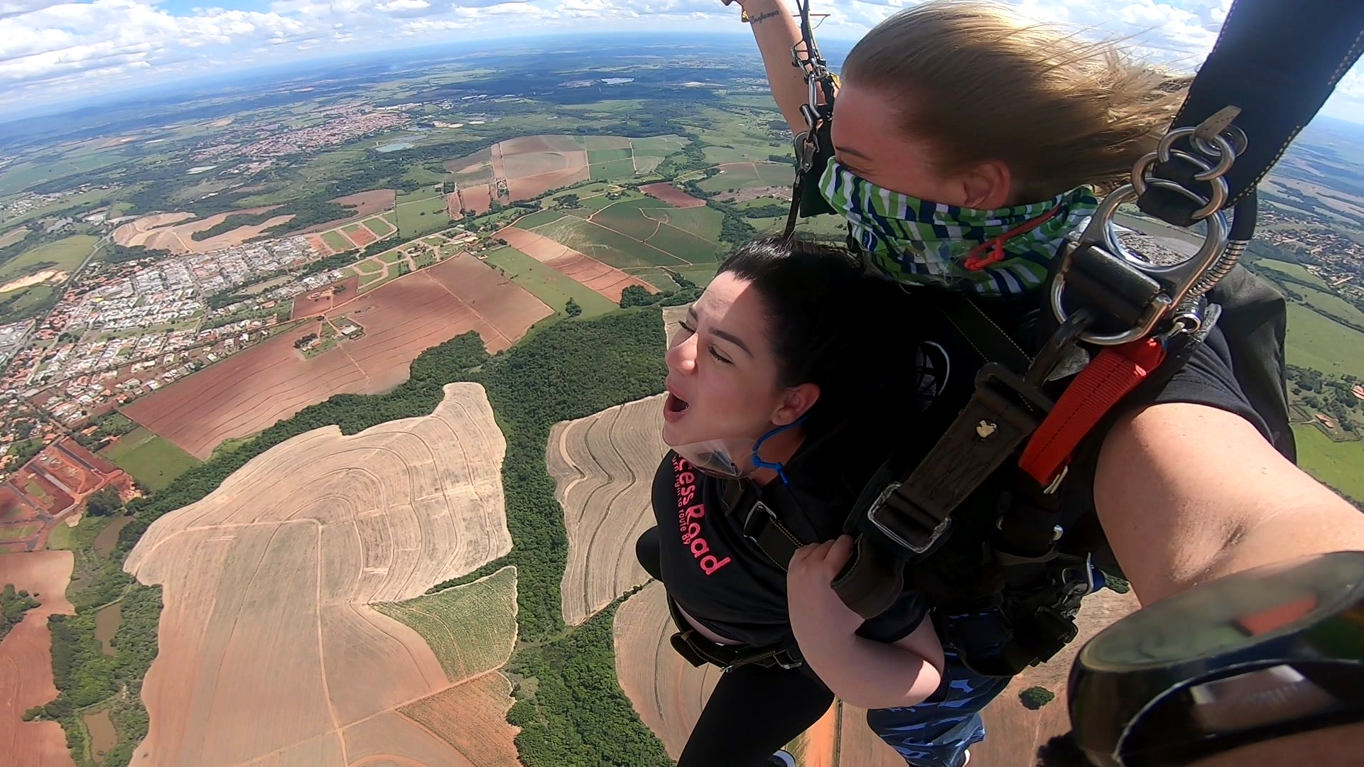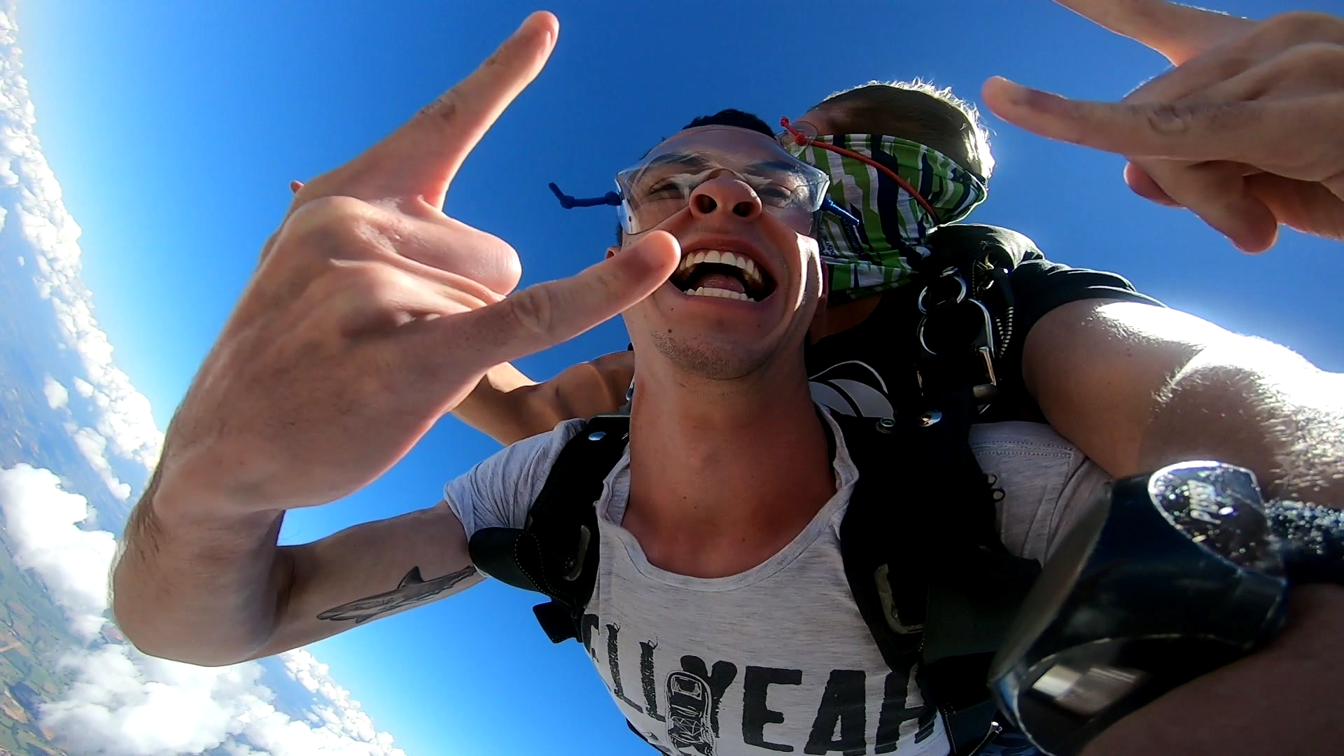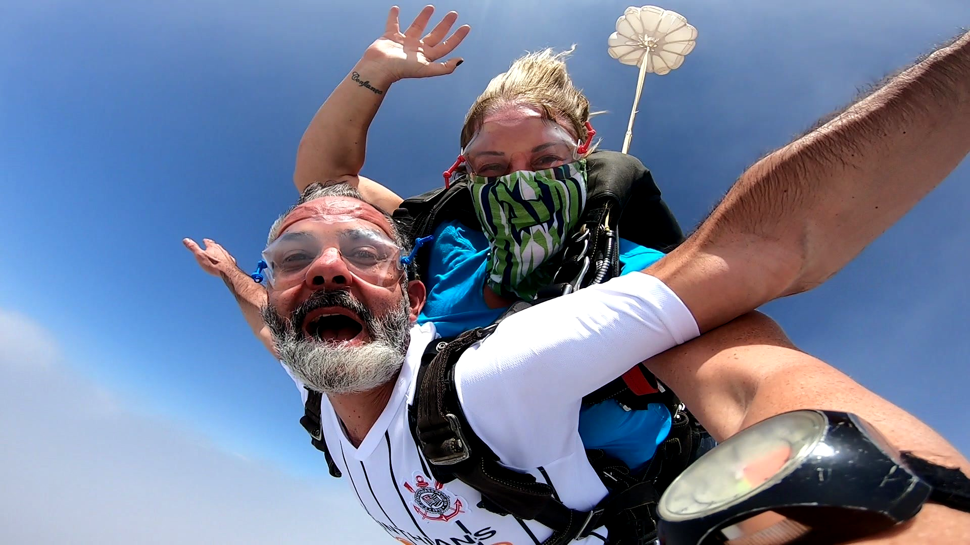Salto Duplo VIP + Vídeo Editado + 500 Fotos por passageiro: imagens do instrutor e cinegrafista paraquedista.